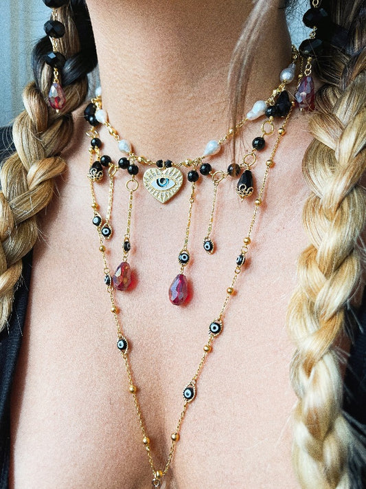 Sold out'MUTYA' Evil Eye + Pearl Choker